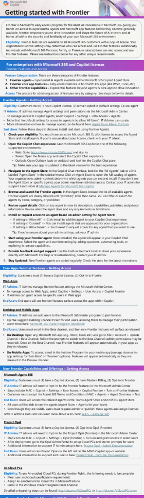 https://adoption.microsoft.com/files/copilot/Frontier_Getting-started-guide.pdf - SITE: More about the Frontier Program for Microsoft 365 Copilot