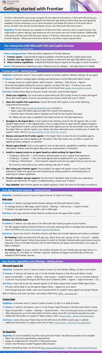 https://adoption.microsoft.com/files/copilot/Frontier_Getting-started-guide.pdf - SITE: More about the Frontier Program for Microsoft 365 Copilot