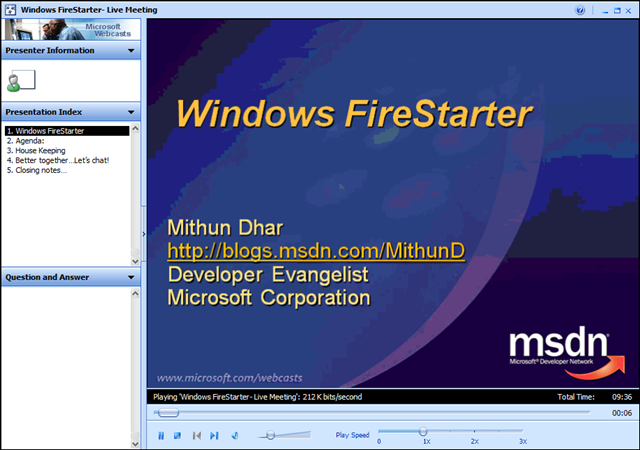 Windows FireStarter is coming to a PC near you. We’re broadcasting another FireStarter event live from Redmond! Register to watch and learn all that you ever wanted to know about Windows. Topics covered: Why Vista?, The Case of the Unexplained, Building Differentiated UI Apps using Composite WPF, Best Practices for Developing for Windows; Windows Security Bitlocker, Windows 7 and Windows Server 2008 R2.