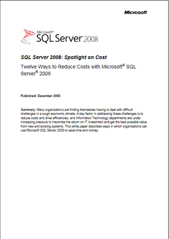 Additionally, a quick summary of SQL Server 2008’s cost cutting capabilities are summarized in the .XPS document below.