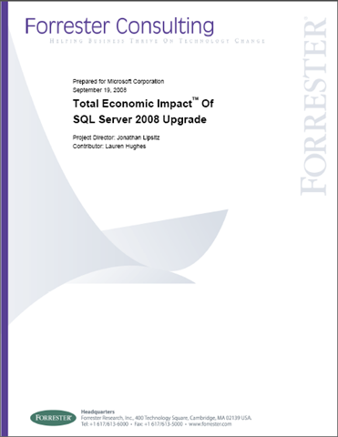 The Forrester study is downloadable below.http://cid-00da410c7f7e038d.skydrive.live.com/embedrowdetail.aspx/ProductMaterial/SQLServer2008/Forrester-TotalEconomicImpactofdeployingSQLServer2008.pdf