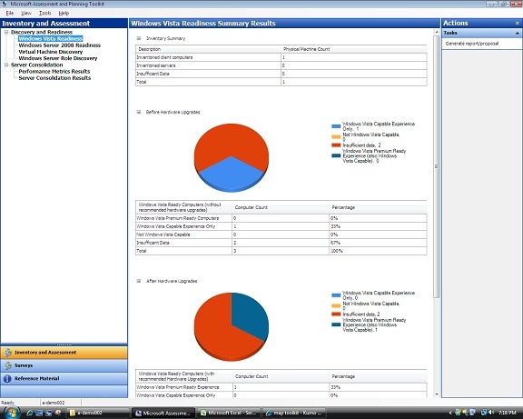 The Microsoft Assessment and Planning (MAP) Toolkit is an integrated platform with tools and guidance that make it easier for you to assess your current IT infrastructure and determine the right Microsoft technologies for your IT needs. It offers quick inventory, powerful assessment and actionable recommendations for many major Microsoft products so you can save time and cost to plan your deployment projects: