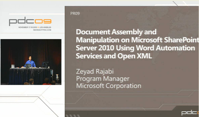 There is a streaming video of the presentation, a link to the slides, and his code. He actually shows code to convert a DOCX to PDF. This blog also has some good general information on Word automation and using the Open XML SDK.