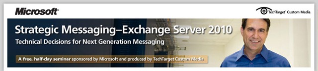 Gain FREE admission to “Strategic Messaging–Exchange Server 2010” and return to the office with a rock-solid understanding of all the new performance and reliability enhancements, potential cost savings, updated security initiatives and definitive answers to any and all compatibility and complexity questions that you might have. (You’ll also be the first to receive a comprehensive breakdown of all the little-known features and functions that have yet to be revealed.) PLUS, this is a rare opportunity to ask your toughest Exchange 2003 and Exchange 2007 questions directly to Microsoft’s top tech gurus in addition to hearing an independent expert’s unbiased opinion at the very same time. Any and all questions and comments, compliments and complaints will be taken in a no-holds-barred interactive forum that sets this unique event apart from the rest.