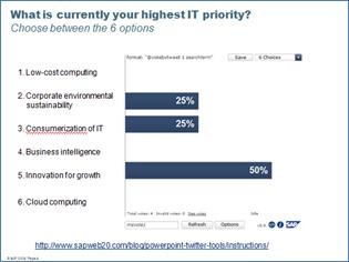 [Taken from http://blogs.msdn.com/dan_fay/archive/2009/12/15/free-powerpoint-twitter-tools-by-sap-web-2-0.aspx]