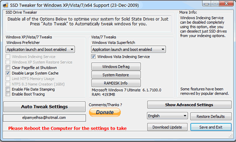So this little find might be of interest to you. Someone named “elpamyelhsa” from Elpamsoft wrote a tool specifically for SSD users saying, “With all the advice online for SSD hard drives it can take hours of research and fiddling to properly setup your SSD drive. Now with this Utility you can adjust Windows settings in seconds including:”