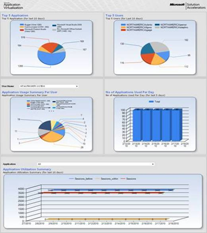 - Easy to customize. The dashboard can easily be customized to meet the needs of different departments and other groups. Any data set in the Microsoft Application Virtualization database can be presented on the dashboard, in chart, gauge, and table formats.