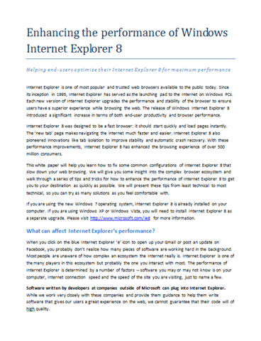 - WHITEPAPER: Internet Explorer 8 Performance Whitepaper