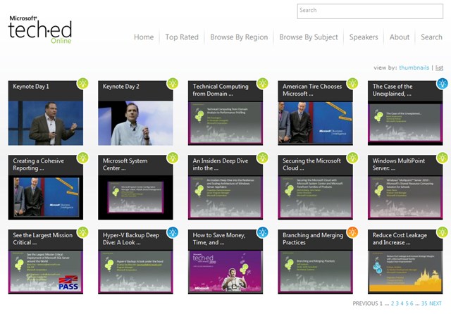 We made all the presentations delivered at TechEd 2010 available for people to view online at no cost. That’s 525 presentations: Keynote presentations & breakout sessions. Slides, demos, talking heads, with full audio. All available ONLINE at no charge.