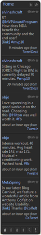 Tweetz also respects the gadget guidelines. The docked version (pictured right) is 130 pixels wide and plays with other "docked" gadgets correctly. Want more real estate? No problem, the undocked version is wider and also displays the user’s picture.