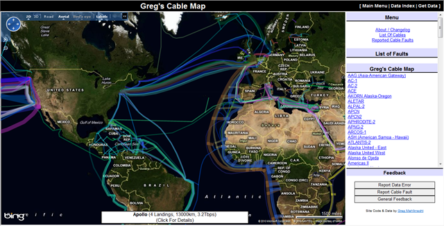 Greg Mahlknecht designed a very rich map that shows graphically the layout of all these cables and equally interesting, shows cable faults – i.e. breaks in connectivity.