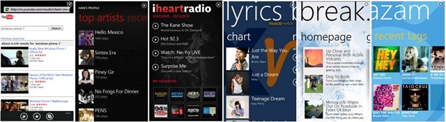 YouTube, Last.FM, i heart radio, lyrics, Break.com, Shazam