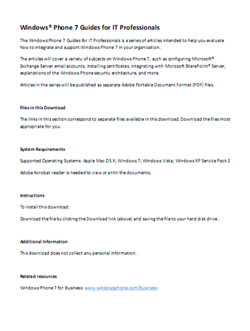 WHITEPAPER: Windows Phone 7 Guides for IT Professionals