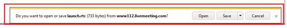 “Do you want to open or save launch.rtc (733 bytes) from www112.livemeeting.com?”