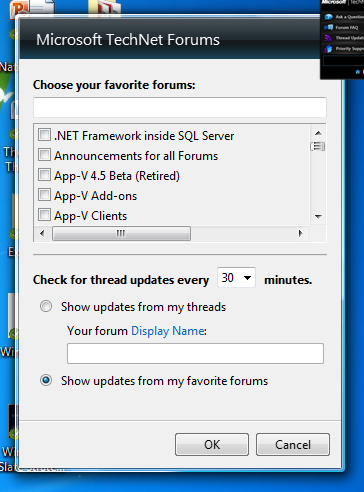 MSDN Forum Assistant and TechNet Forum Assistant offer a convenient way for the forum users to read the forum recent threads and your own threads, it also make it easy to create new threads and search in the forum.