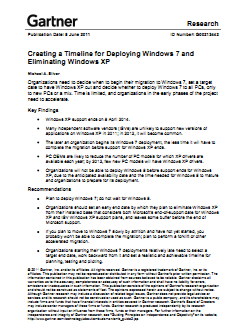 - GARTNER: “Creating a Timeline for Deploying Windows 7 & Eliminating Windows XP”