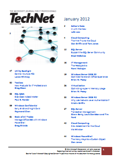 The January edition of TechNet magazine was posted. As usual, there’s a series of great technical articles on a wide range of topics related to Microsoft technologies. Here’s the January topics list: