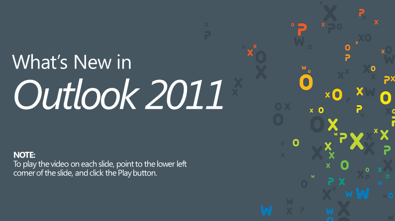 The Office for Mac 2011 training downloads include Portable Document Format (.pdf) and PowerPoint (.pptx) versions of all Office 2011 tutorials and videos, so you can customize them for group training or view them on your desktop. To access the same training online, visit the Office for Mac website.