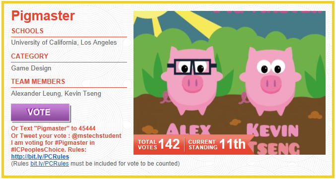@mstechstudent I am voting for #Pigmaster in #ICPeoplesChoice. Rules: http://bit.ly/PCRules