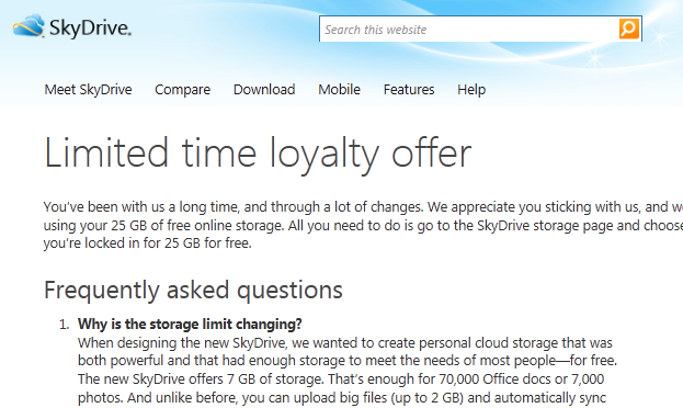 - SKYDRIVE: Limited time loyalty offer