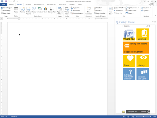 QuickHelp Starter is a collection of short videos that help users understand the ‘how’ and ‘why’ of features in Word 2013 and Excel 2013. Users increase productivity by increasing their ability to effectively utilize their productivity software. Features include: