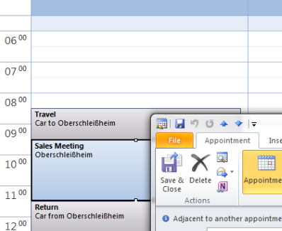 The main feature of this add-in is being able to set the travelling time needed to reach the location of the appointment or meeting. It has also a feature to calculate this automatically for you in the background (via OpenRouteService). When moving around the appointment/meeting in your calendar, it moves the traveling time block with it.