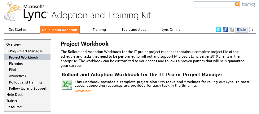 The Microsoft Lync 2010 Adoption and Training Kit provides a one-stop shop for resources for IT pros, project managers, help desk agents, and trainers.