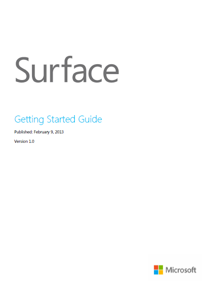 With the release of Surface Windows 8 Pro, we’ve also released the “Getting Started Guide for Surface”, a 68 page document (1.35MB PDF) that is written for BOTH the Surface Windows RT owner or the Surface Windows 8 Pro owner.