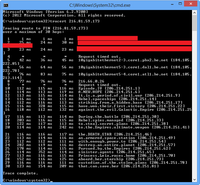 - tracert 216.81.59.173