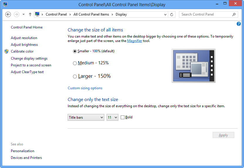 Surface Pro is pre-configured with the display text size at “Larger – 150%” so if you change this to “Medium – 125%”, and reboot, you’ll find that that Starcraft 2 will work just fine.