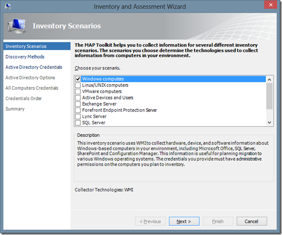 Accelerate your Windows Server 2012 migration with Microsoft Assessment and Planning (MAP) Toolkit 8.5. This latest version of MAP adds new scenarios to help plan your environment with agility while lowering the cost of delivering IT. Included in MAP 8.5 are hardware and infrastructure readiness assessments to assist you in planning the deployment of Windows 8 and Windows Server 2012, preparing your migration to Windows Azure Virtual Machines, readying your environment for Office 2013 and Office 365, and tracking your usage of Windows Server, Lync, SharePoint, and Exchange.