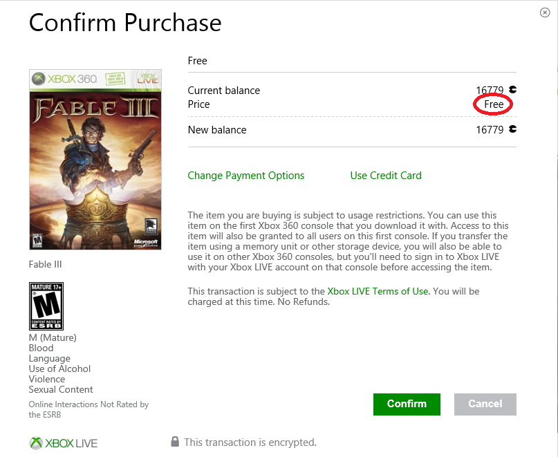 - Click "Use Microsoft Points" link on the "Confirm Purchase" dialog box. The price should now list as "FREE".