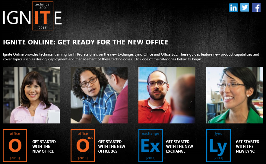 Ignite Online provides technical training for IT Professionals on the new Exchange, Lync, Office and Office 365. These guides feature new product capabilities and cover topics such as design, deployment and management of these technologies.