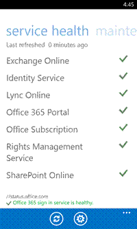 As we discussed in a recent blog post, Cloud services you can trust, "Transparency requires consistent communication." We’re working to improve the transparency of the Office 365 service by continuously improving our communication with customers on changes that impact the Office 365 environment. Recently we deployed the improved Message Center, which delivers messages targeted to your organization. Now we’re introducing another communication tool, one that was recently demoed on the November 6 episode of The Garage Series– a new app for on-the-go service health checks.