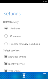 Looks like we are shipping a new Windows Phone mobile app for Office 365 Administrators to enable them to monitor the health of the Office 365 service.