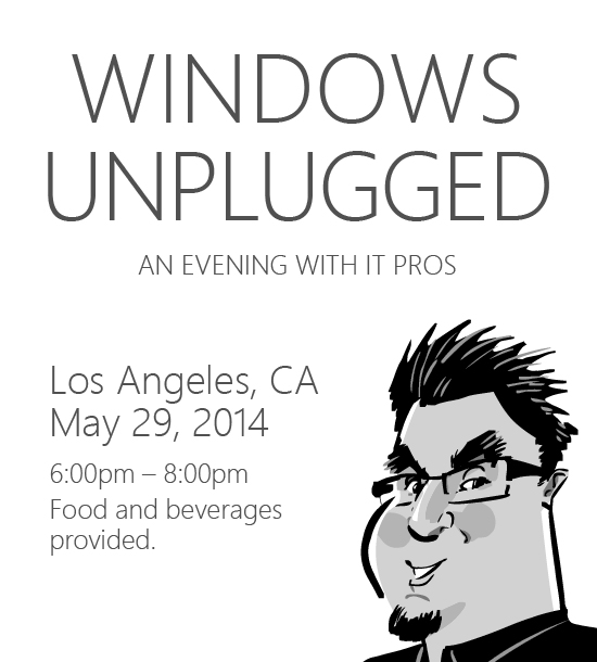 “I’m excited to announce our Windows Unplugged Tour. Windows Unplugged is similar to the Springboard Series Tours we did in the past, but scaled down since it’s just me who will be presenting. I’ll be walking IT pros through the latest Windows and Windows Phone features, the newest devices, and Windows management tools. I’ll be encouraging the audience to drive the discussions and I will take everyone’s feedback back to Redmond. I’ll also have lots of demos so it will be a great event.”