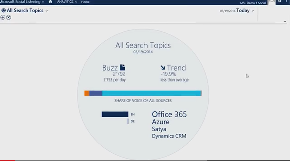 I am incredibly excited to announce the availability of Microsoft Social Listening. This powerful tool will enable your people to tap directly into the social conversation so your customer-facing employees can create amazing customer experiences. Marketers can track sentiment related to your brand and understand how their marketing tactics are resonating. Sales people can stay on top of the competition while watching for social buying signals. Service teams can delight customers by providing real-time social care. Because, that’s just it, we don’t think your social tool should be relegated to just a select few individuals in your organization, we believe the power of social listening should be given to everyone. How do we do that? By making it part of your current Microsoft Dynamics CRM Online subscription (for customers with 10 professional seats, MSL comes at no additional charge) and by making it super easy to use.