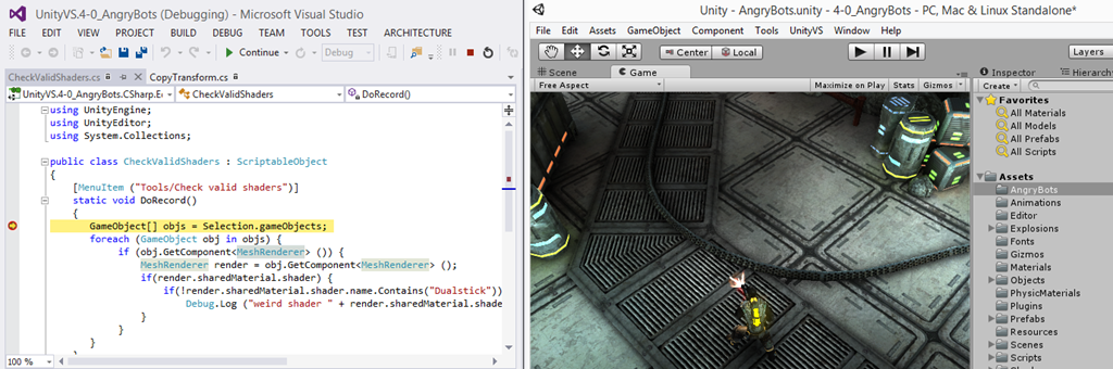 UnityVS enables Unity developers to take advantage of the productivity of Visual Studio to author, browse and debug the code for their Unity applications. Already today, dozens of the biggest names in game development rely on Visual Studio and the UnityVS plugin.