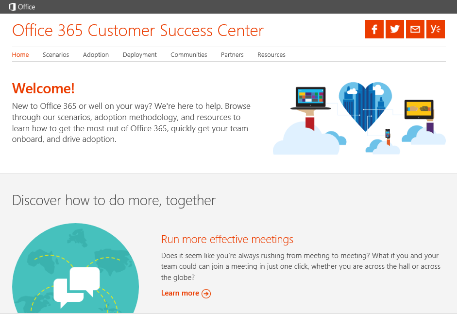 The Customer Success Center is a resource where folks responsible for Office 365 deployments and management can read and research on: