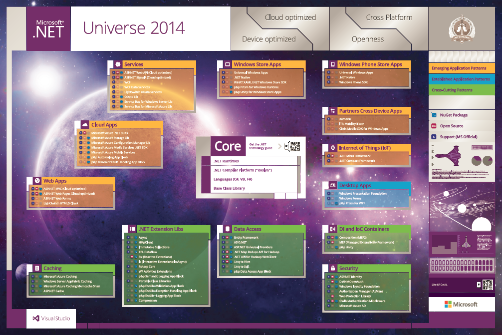 This poster shows how the trends are changing in .NET as we´re moving from a single large .NET Framework to a more loosely coupled and autonomous libraries and sub-frameworks, many of them even published as NuGet packages and evolving continuously.