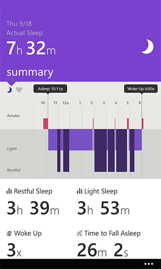 Immediately after waking up, I can look at my phone and it will pull up the data that my Microsoft Band collected overnight about my sleep. This data is viewable as a history and is very useful in understanding how I should prepare for a good night’s rest.