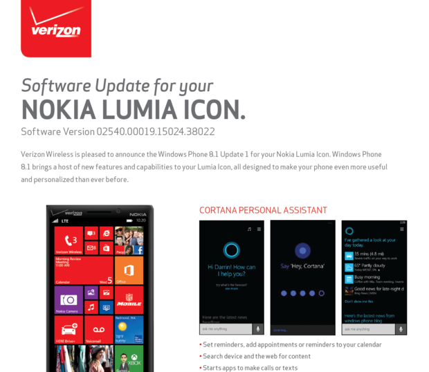 11/lumia-denim-now-rolling-lumia-icon-u-s/ - Neowin: “It’s official: Denim update is now rolling out to Verizon’s Lumia Icon”