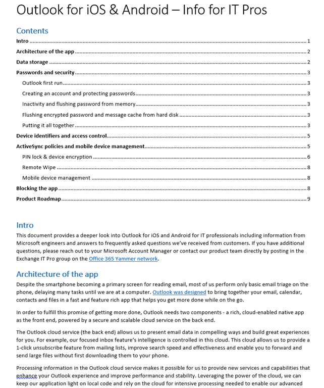 Earlier, we released a new version of the "Outlook for iOS and Android_Info for IT Pros" Word document.