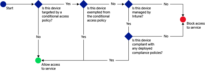 - Compliance policies are optionally deployed to users and devices to define the rules and settings that the device must comply with in order to be allowed access to services. These rules include passcode, encryption, whether the device is jailbroken or rooted, and whether email on the device is managed by a Intune policy. If a compliance policy is not deployed, then the conditional access policy will treat the device as compliant.