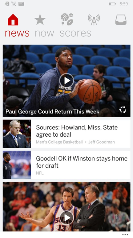 - ANNOUNCEMENT: Introducing the all-new ESPN app for Windows Phone