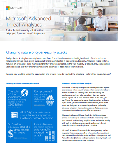 In case you missed it, customers with Enterprise CAL on Software Assurance will be getting Microsoft Advanced Threat Analytics at no additional charge.