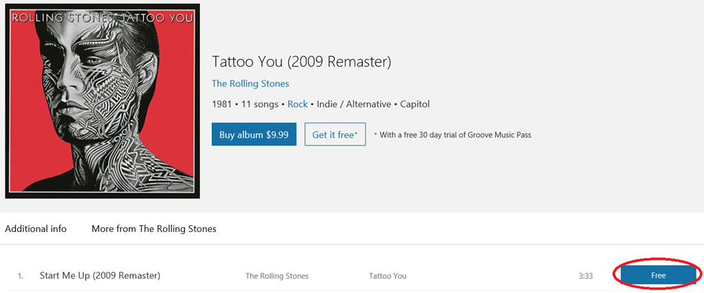 The Rolling Stones “Start Me Up” is available for FREE on Groove Music to celebrate the 20th anniversary of Windows 95.