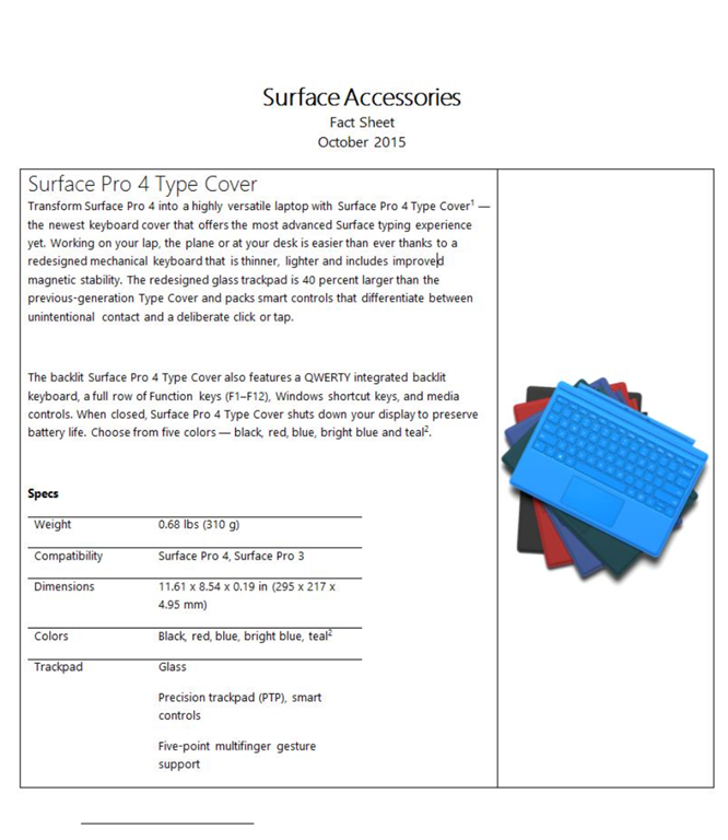 https://view.officeapps.live.com/op/view.aspx?src=http%3A%2F%2Fnews.microsoft.com%2Fdownload%2Fpresskits%2Fsurface%2Fdocs%2Fsurfacepro4fs.docx - DOWNLOAD: Surface Accessories Factsheet