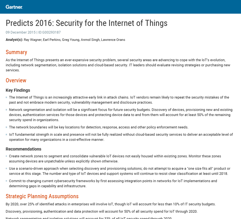- DOWNLOAD: “Gartner Predicts 2016: Security for the Internet of Things”
