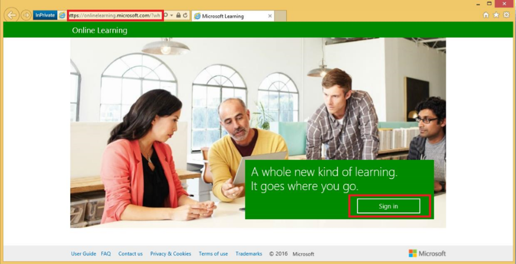 Since Online Learning is given as a benefit through Software Assurance, users would need to complete the first time enrollment using the Access Codes for eLearning which are obtained in the Volume Licensing Center site.